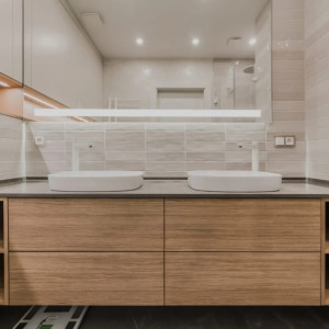 Vonios kambario baldai pagal užsakymą, pritaikyti skirtingo dydžio erdvėms ir gaminami iš vandeniui atsparių medžiagų.